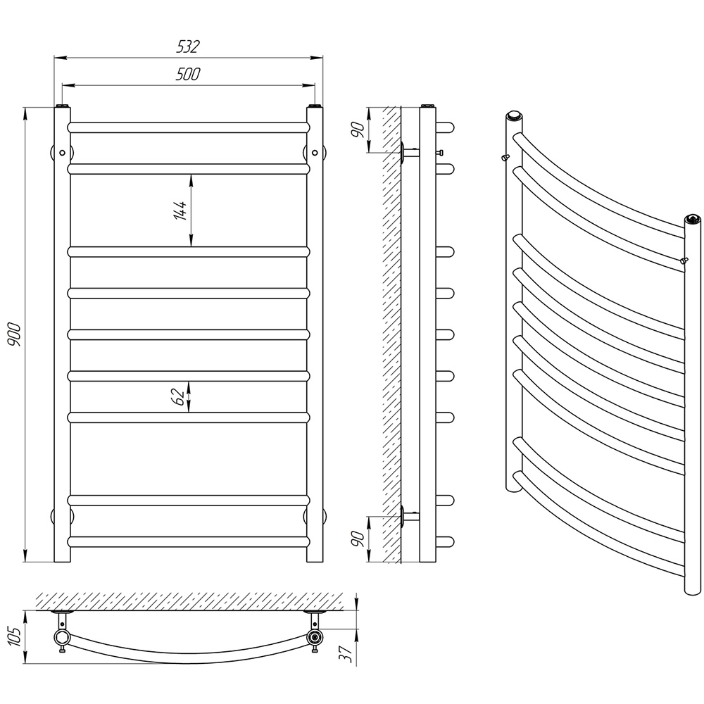 Схема - Водяна рушникосушарка Laris Класік-32 П9 500 х 900